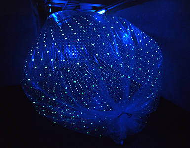 restriction sight NEU 2004 h250, w350, d750cm (installation) plastic sheet, paper, light gathering seal, fan, black light, others solo exhibition/neutron B1 GALLERY photographed by ENOMOTO Norihisa