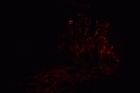 vertical clue 2007 h250, w530, d720cm (installation) laser diode, fan, threads, others solo exhibition/GALLERY b.TOKYO 1 2 3