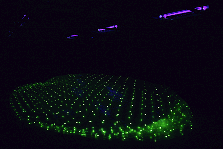 restriction sight IG2 2005 h240, w500, d900cm (installation) plastic sheet, paper, fluorescent paint, fan, black light, others solo exhibition/INAX GALLERY 2