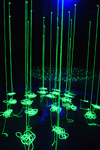 restriction sight TOM 2007 h550, w500, d1000cm (installation) plastic sheet, paper, woolen yarn, fluorescent paint, fan, black light, others 10th.The Taro Okamoto Award for Contemporary Art/Taro Okamoto Museum of Art Kawasaki Taro prize 1 2